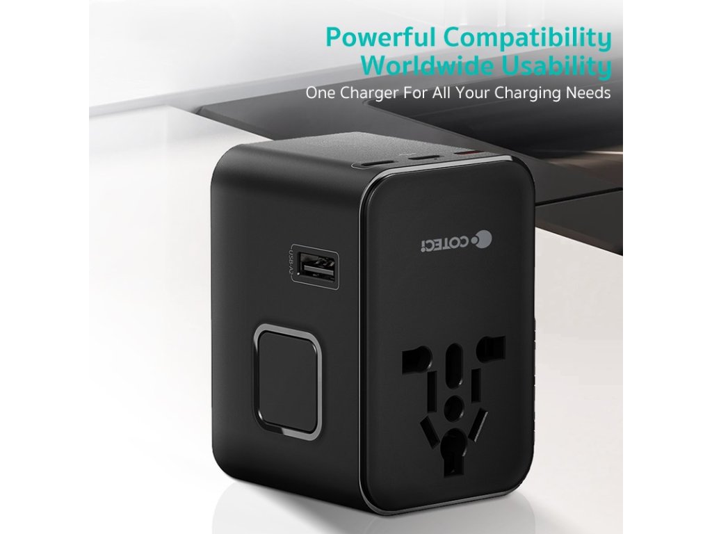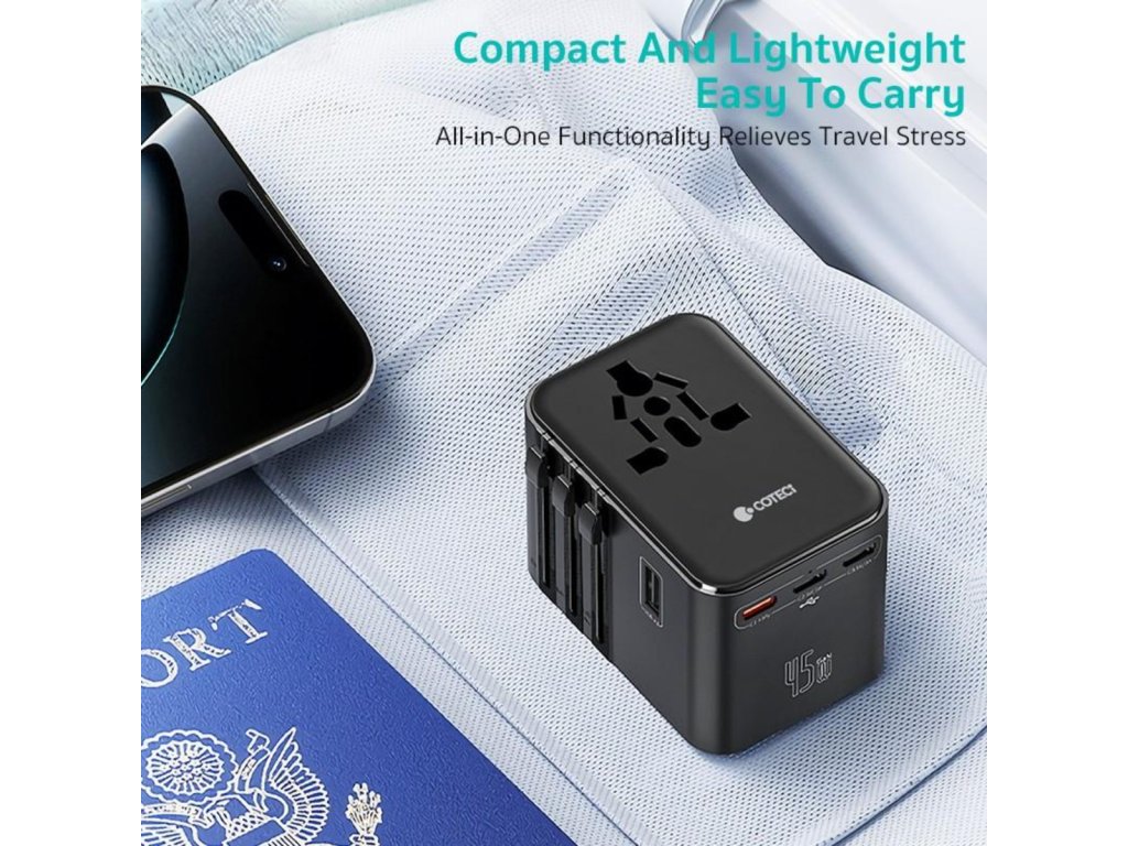 Călătoriți fără griji cu adaptorul universal Coteci 45W
