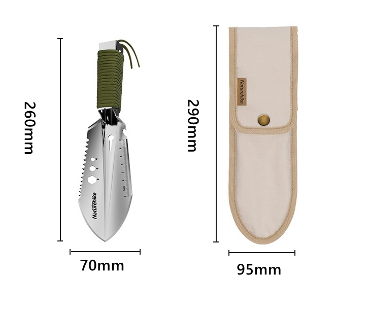 - Săpare: săpați găuri pentru țăruși de cort sau gropi de foc rapid și ușor cu această lopată