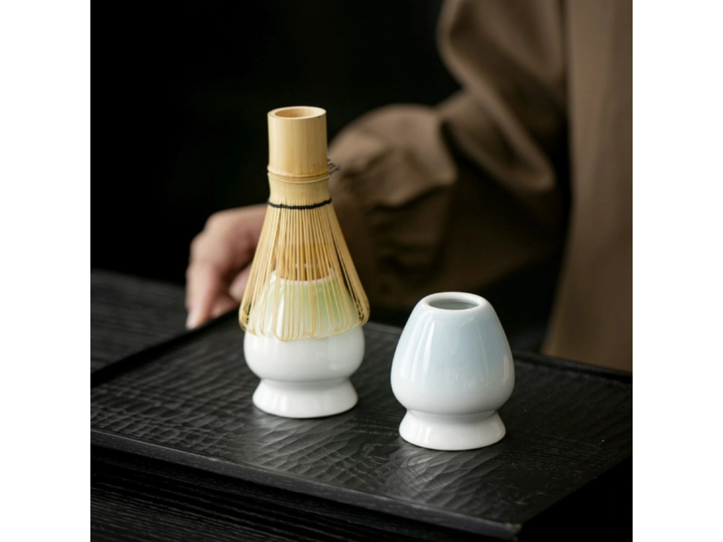 Suportul ceramic este destinat așezării telului pentru matcha chasen după utilizare. Ajută telul să își păstreze forma naturală, protejează perii fini împotriva deformării și susține uscarea corectă. Datorită execuției ceramice stabile, rămâne ferm pe loc și este potrivit pentru ritualul zilnic de matcha acasă sau la birou.