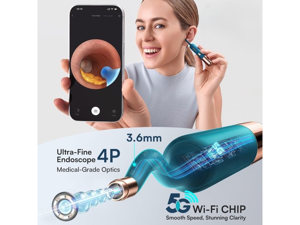 Bebird Earsight Ultra este un dispozitiv inovator de curățare vizuală a urechilor, care aduce o dimensiune complet nouă a igienei urechilor direct la dumneavoastră acasă. Cu o cameră 2K HD (20 MP) și un transfer stabil prin Wi-Fi 5G al imaginii, puteți vedea în timp real ce se întâmplă în urechile dumneavoastră. Produsul este conceput pentru a fi sigur și confortabil și este ideal pentru adulți și copii. Spre deosebire de bețișoarele tradiționale din bumbac, care pot provoca leziuni, Bebird Earsight Ultra oferă capete moi din silicon și un vârf ultra-subțire cu diametrul de doar 3,6 mm, asigurând o curățare eficientă și delicată. Fără griji legate de rănirea canalului auditiv – cu acest dispozitiv aveți control total asupra întregului proces.