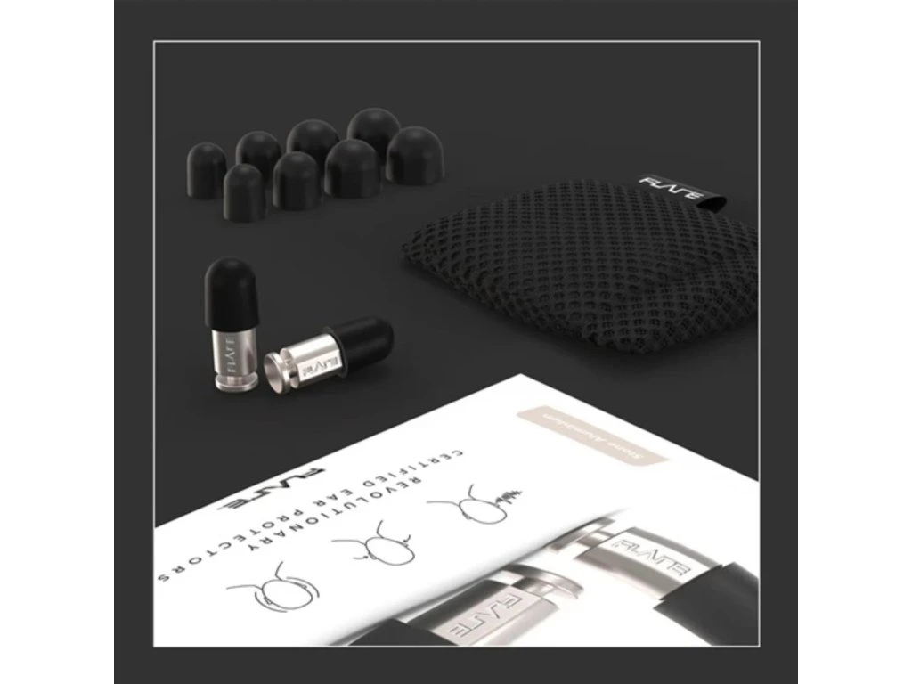 În pachet sunt incluse vârfuri interschimbabile din spumă cu memorie activată termic, care se adaptează formei urechii și ajută la menținerea dopurilor stabile chiar și la purtare îndelungată. Sunt disponibile 4 dimensiuni (XS, S, M, L), astfel încât puteți alege ușor potrivirea corectă. Dopurile sunt concepute pentru utilizare repetată. Pentru transport și protecție, pachetul include o husă practică care încape în buzunar sau rucsac. Combinația dintre miezul solid din titan și vârfurile din spumă oferă atenuare ridicată și confort în utilizarea zilnică.