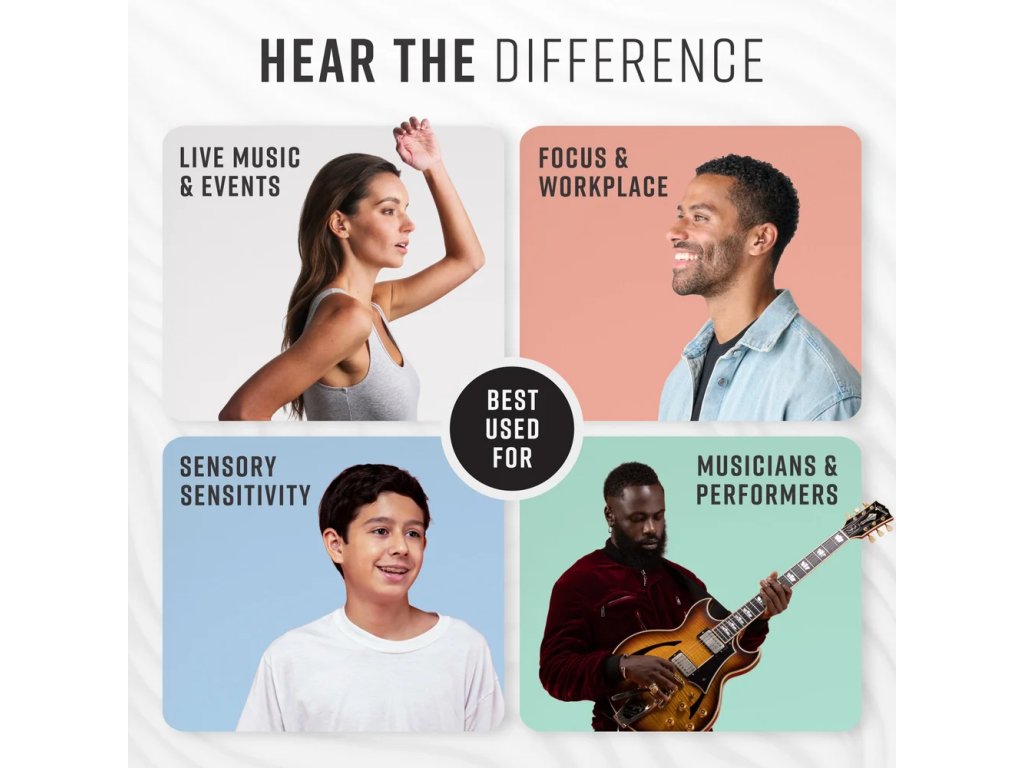 dopurile pentru urechi Vibes pot fi luate cu tine la spectacole live, cursuri de fitness, motociclete, evenimente zgomotoase și divertisment, la serviciu sau sunt potrivite și pentru persoanele cu autism.