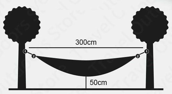 Atârnați hamacul între doi copaci, stâlpi, mașini. Este necesar să se selecteze două puncte la o distanță corespunzătoare. Hamacul trebuie să atârne la o înălțime de 15-50 cm deasupra solului. Este necesar să atârnați hamacul într-o poziție orizontală, astfel încât ambele puncte de care este legat hamacul să fie la aceeași înălțime, altfel hamacul poate deveni instabil. Nu stați în picioare în hamac și întotdeauna întindeți-vă în centrul hamacului.