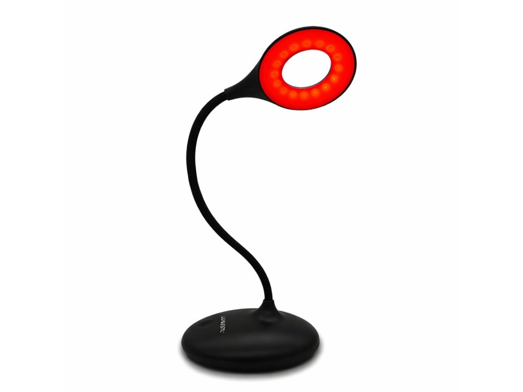Lampa LED Lunesto se adaptează cu ușurință diferitelor situații – de la lumină de noapte delicată pentru adormire până la iluminare mai intensă pentru citit. Lumina roșie și portocalie creează o atmosferă relaxantă, reduce oboseala ochilor și oferă un ambient plăcut, fără tranziții dure. Gâtul flexibil permite orientarea exactă a luminii acolo unde este necesar, inclusiv în timpul îngrijirii nocturne a copilului, fără a deranja pe ceilalți. Datorită dimensiunilor compacte și greutății reduse, lampa este ușor de transportat oriunde – fie în vacanță, fie într-o escapadă de weekend. Lunesto este astfel o soluție practică și durabilă pentru iluminatul sănătos de seară.