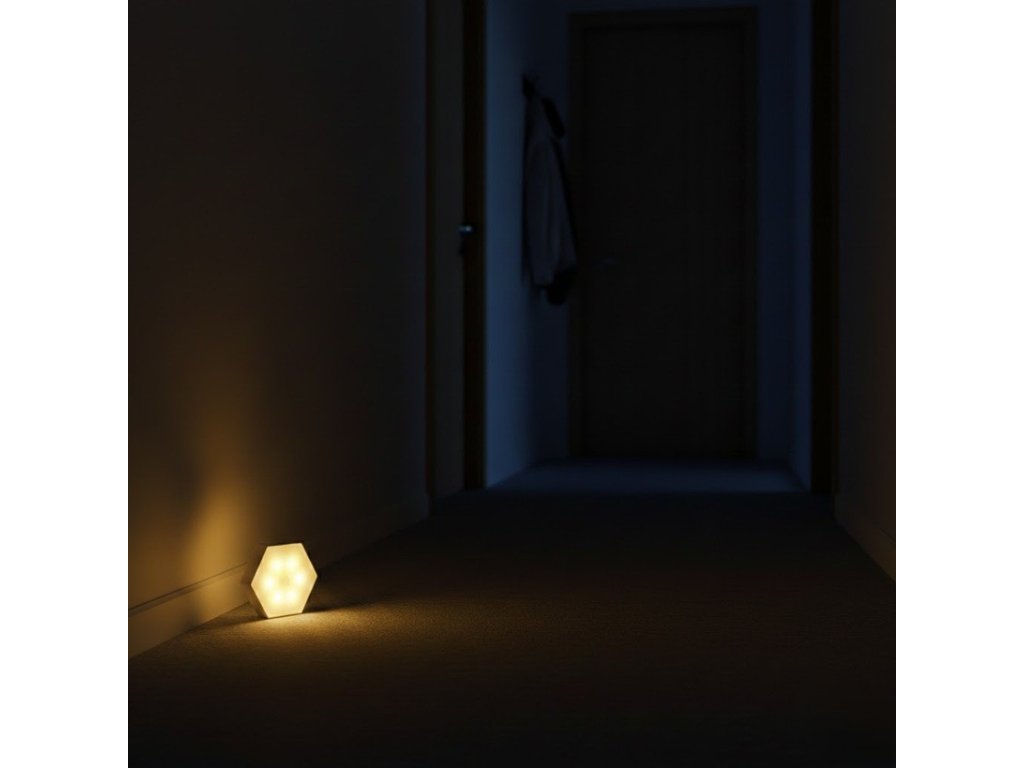 Lampă LED chihlimbar cu senzor de mișcare – iluminare ideală pentru un somn liniștit
