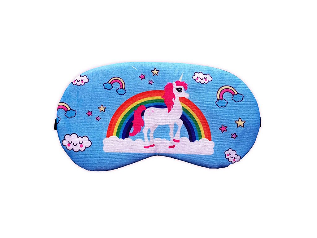 Mască de ochi colorată pentru somn, cu motiv unicorn. Confortabilă, plăcută pe față și protejează ochii de lumină. Ideal pentru copii.