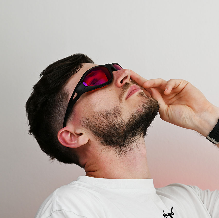 Ochelarii au un design sportiv modern care combină stilul și funcționalitatea. Ramele negre sunt extrem de durabile și în același timp ușoare, oferind confort pe tot parcursul zilei. Datorită ramelor înalte cu pernițe moi din spumă, ochelarii se potrivesc perfect pe față și împiedică pătrunderea luminii din partea inferioară și din lateral, asigurând o eficiență maximă în blocarea luminii.