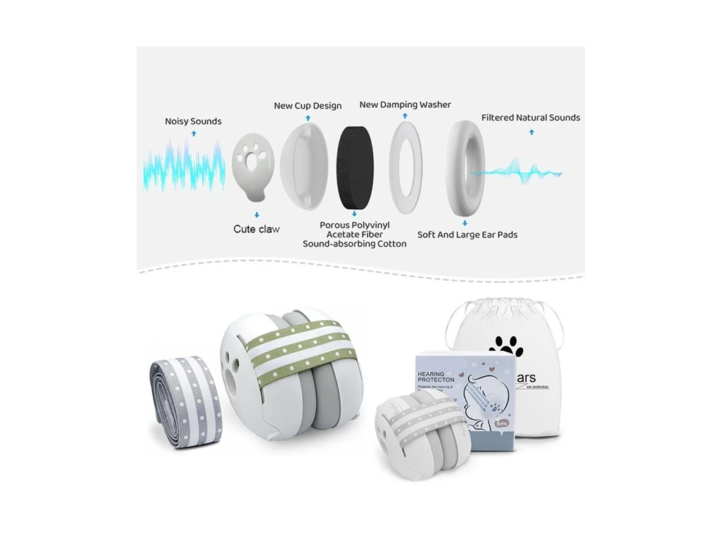 Căștile sunt concepute pentru utilizare frecventă acasă și afară. Au un design ușor de 172 g, care facilitează manipularea și purtarea. Cupele rezistente din material ABS sunt practice pentru transportul zilnic și utilizarea obișnuită. Protecția este demonstrată prin certificarea conform normelor UE și ANSI, astfel încât vă puteți baza pe parametri verificați. Pachetul include o husă textilă pentru depozitare în geantă sau în cărucior, astfel încât căștile să rămână protejate împotriva murdăriei. Spre deosebire de alternativele obișnuite pentru adulți, acestea sunt destinate special bebelușilor și copiilor mici și combină designul tip scoică cu o construcție blândă cu pielea copilului.