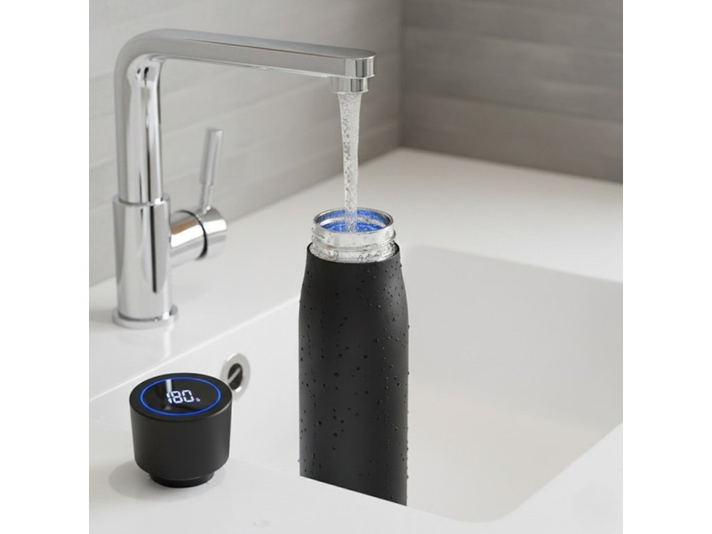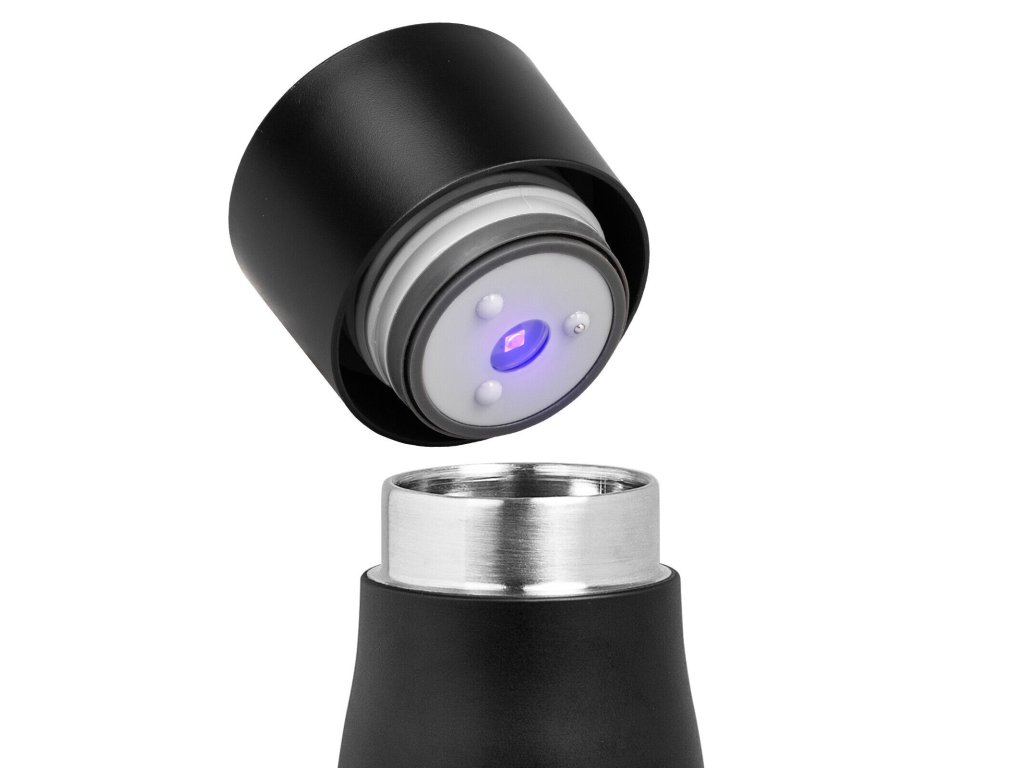 UV Sterilizing Smart Water Bottle este o sticlă termo revoluționară care îți schimbă modul de a consuma apă. Datorită sterilizării UV-C integrate, nu trebuie să îți faci griji cu privire la impurități – sticla se curăță singură și elimină bacteriile și microorganismele. Este ideală pentru persoanele active care doresc siguranța unei ape igienic curate, atât acasă, cât și în deplasare. Designul modern și mementoul inteligent pentru hidratare te ajută să menții un aport adecvat de lichide chiar și în zilele aglomerate. Bucură-te de controlul temperaturii băuturii cu ajutorul afișajului digital care indică temperatura actuală și savurează băuturi calde până la 12 ore sau reci până la 24 de ore.
